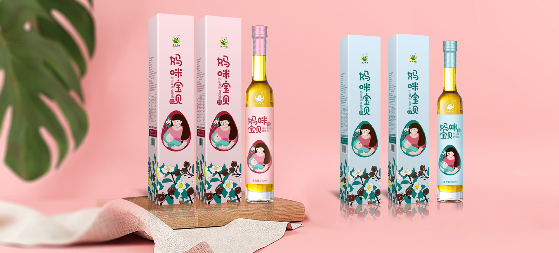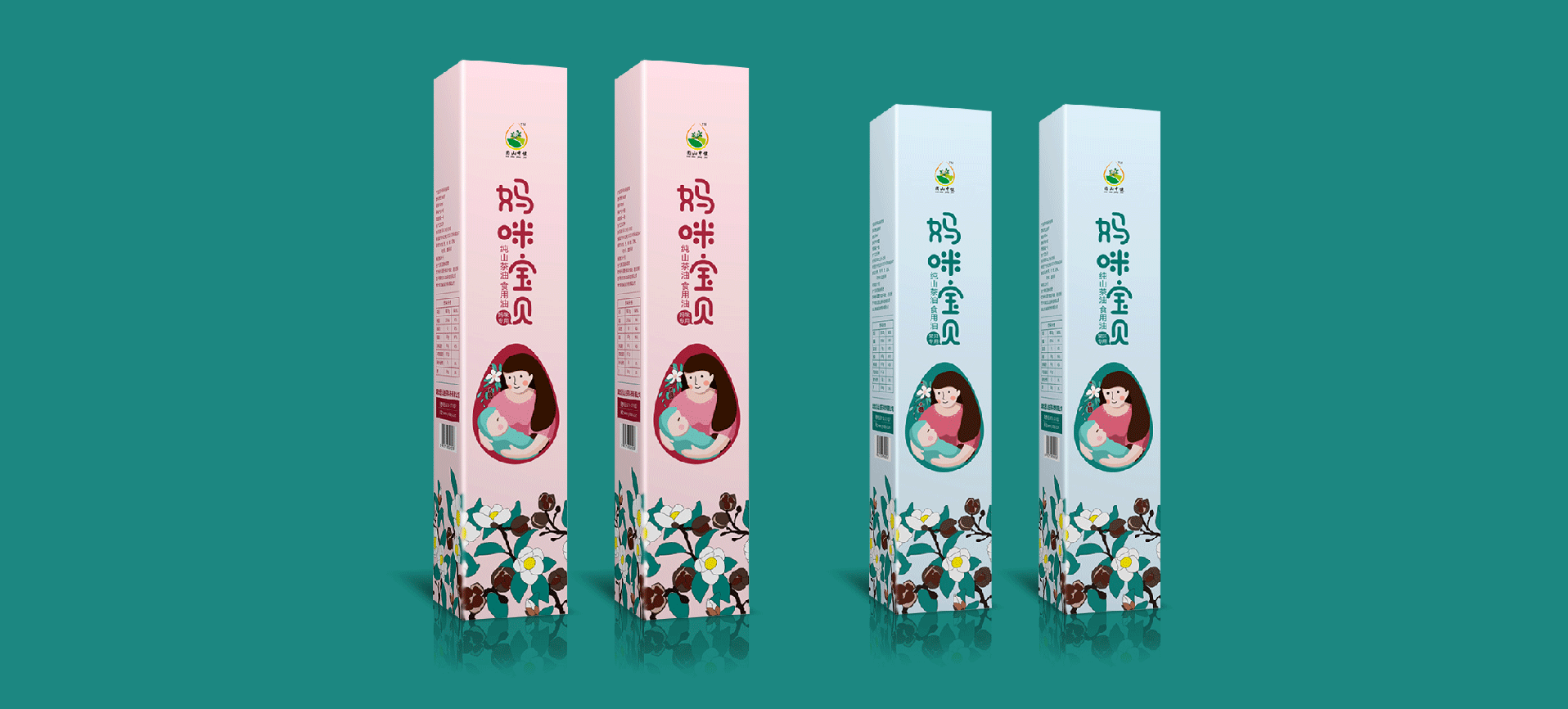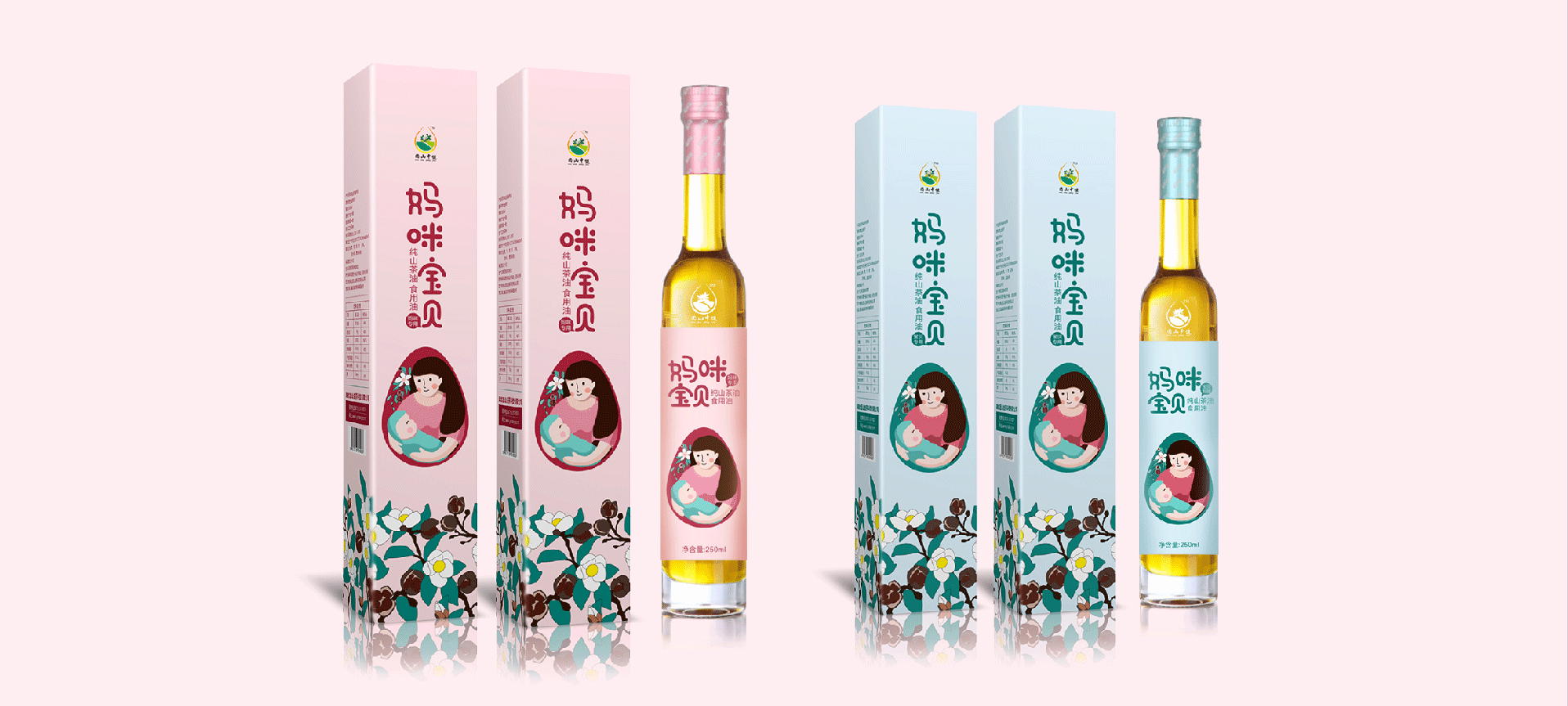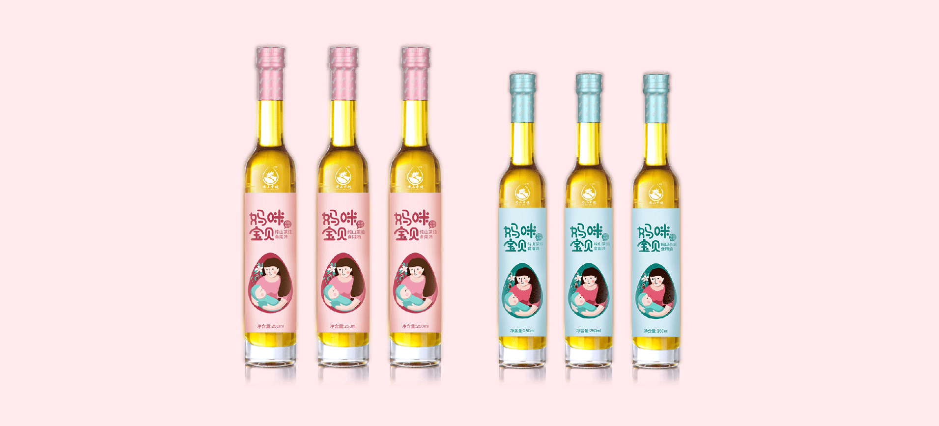 在針對于山茶油市場進行調研后,將目標消費人群聚焦在孕媽和準孕媽中,通過分析消費者痛點和感情消費點,對產品包裝進行升級,媽咪寶貝是一個健康安全山茶油的品牌,經過產品整合,將系列產品包裝設計規劃統一,加深消費者對媽咪寶貝的品牌認知度,使得品牌本身定位更加精準。