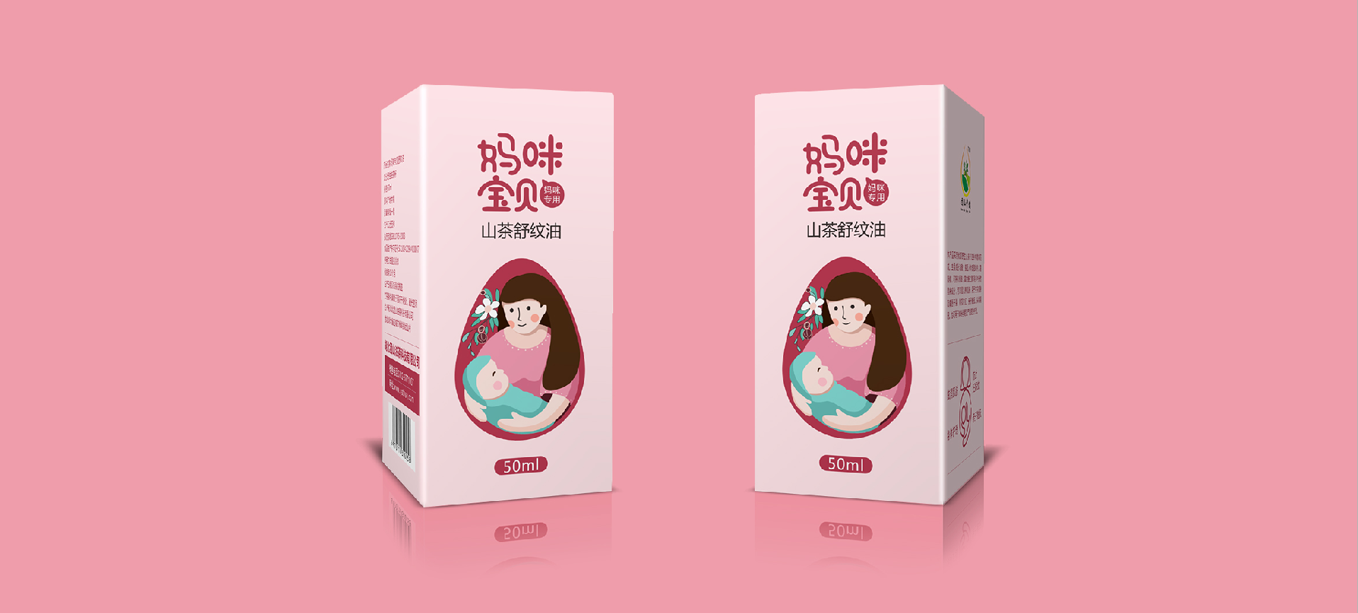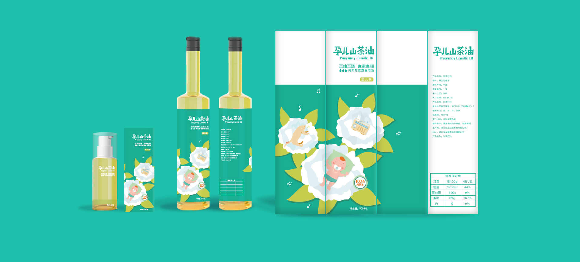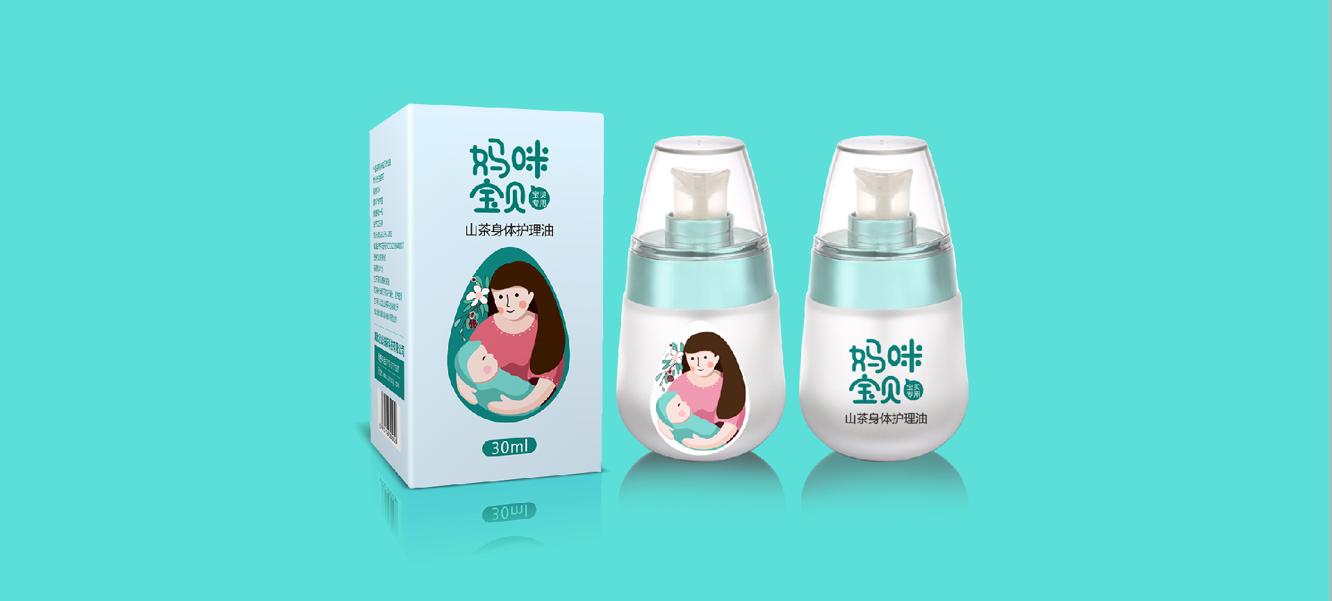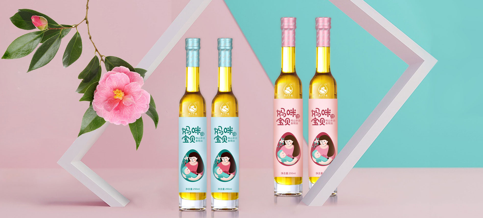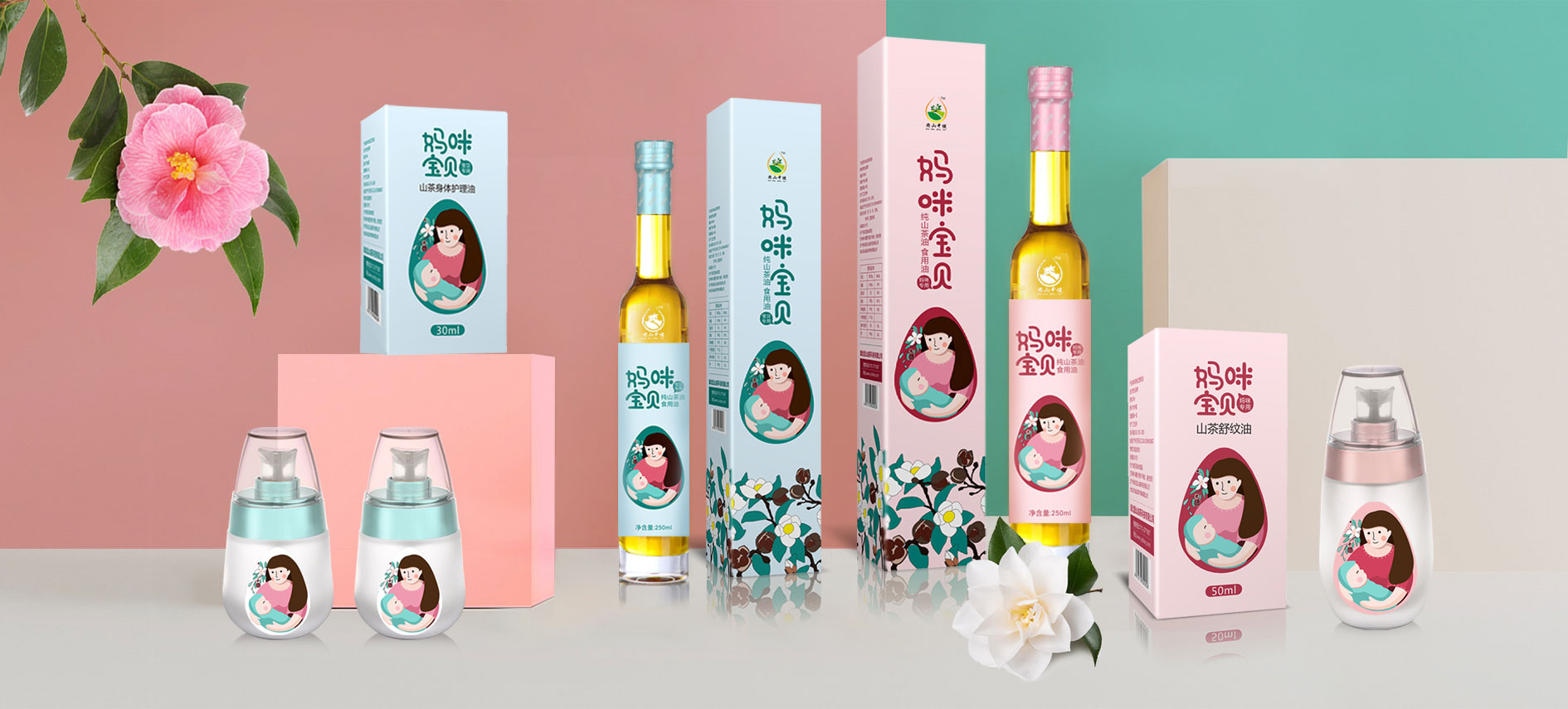 在針對于山茶油市場進行調研后,將目標消費人群聚焦在孕媽和準孕媽中,通過分析消費者痛點和感情消費點,對產品包裝進行升級,媽咪寶貝是一個健康安全山茶油的品牌,經過產品整合,將系列產品包裝設計規劃統一,加深消費者對媽咪寶貝的品牌認知度,使得品牌本身定位更加精準。