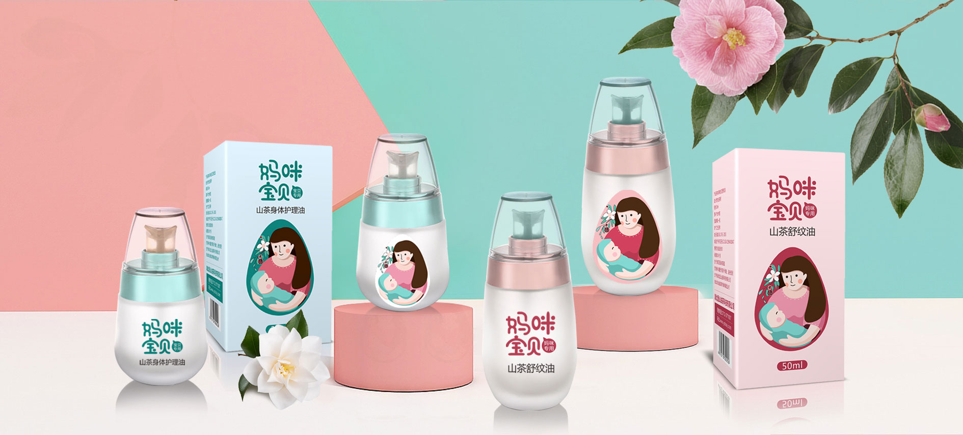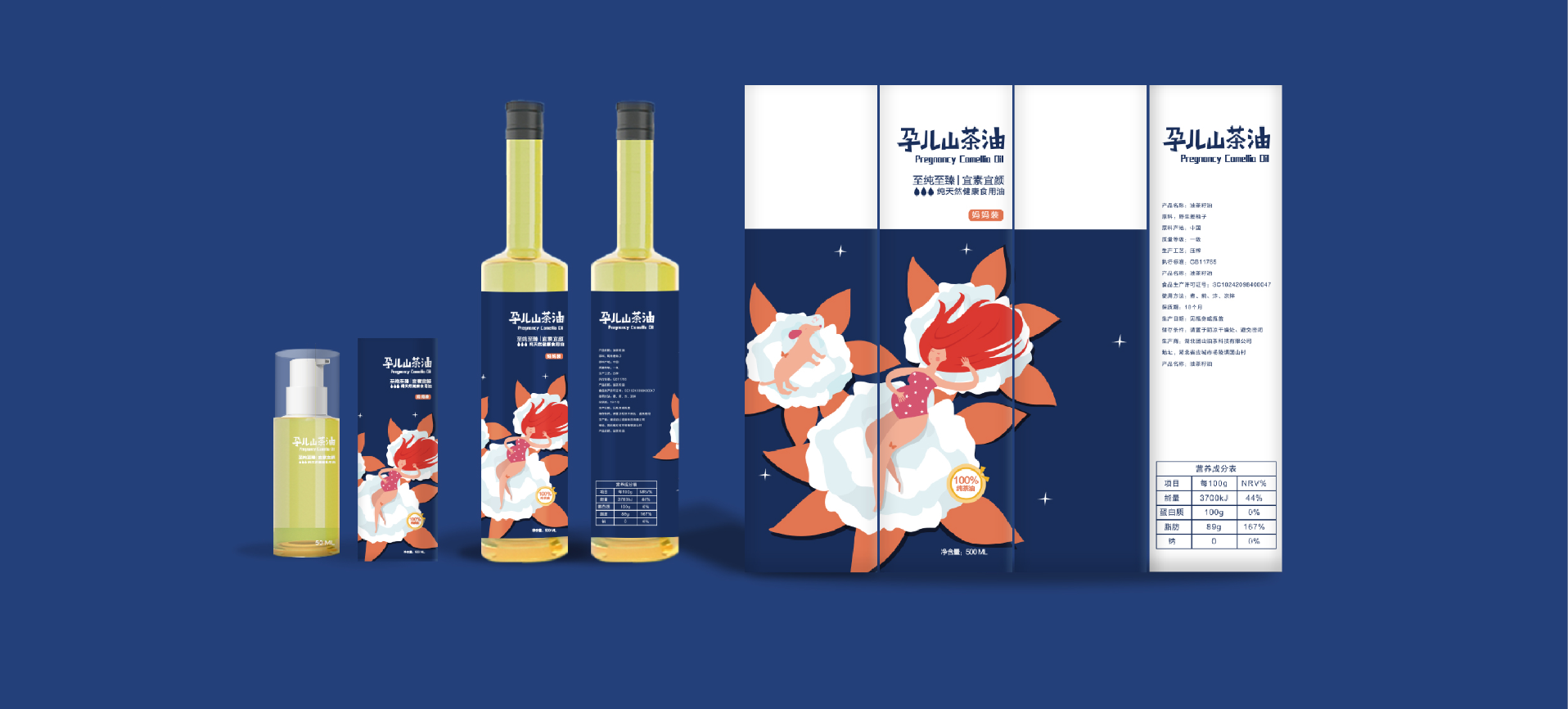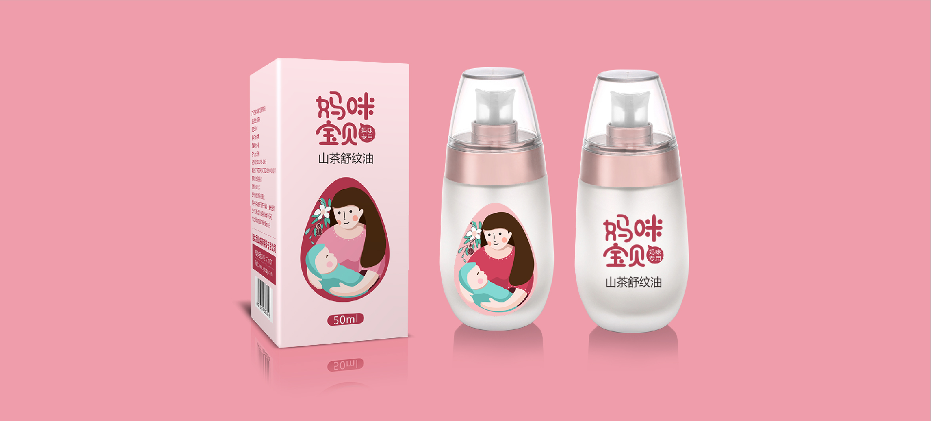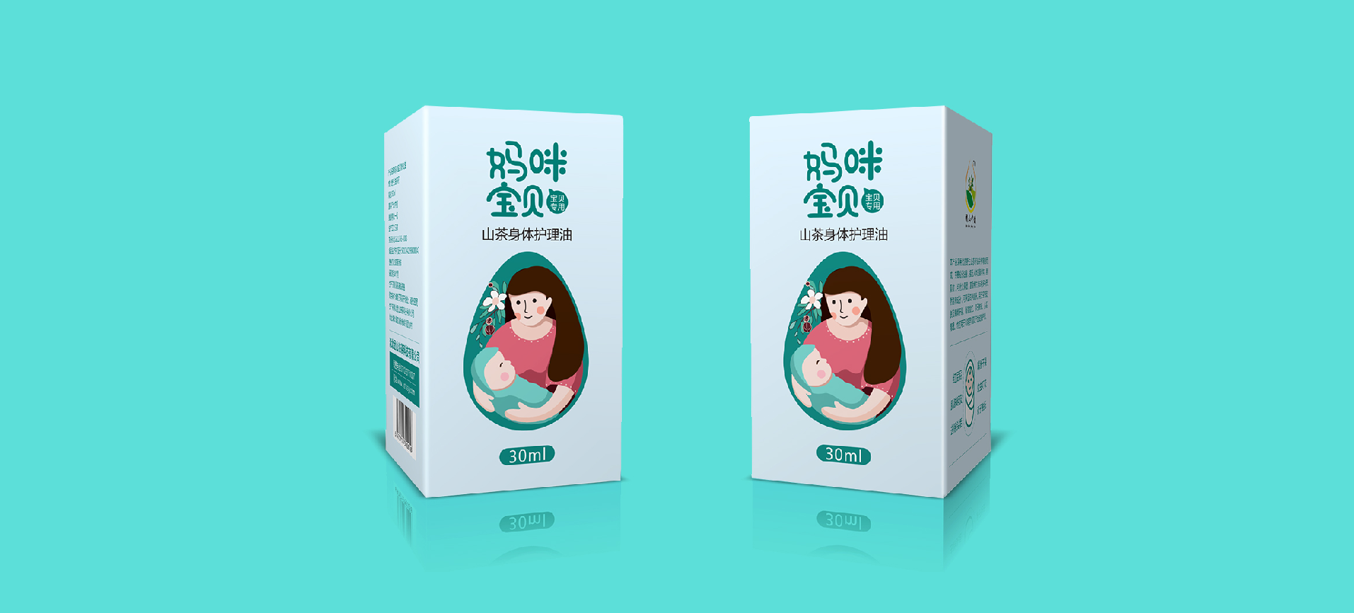 在針對于山茶油市場進行調研后,將目標消費人群聚焦在孕媽和準孕媽中,通過分析消費者痛點和感情消費點,對產品包裝進行升級,媽咪寶貝是一個健康安全山茶油的品牌,經過產品整合,將系列產品包裝設計規劃統一,加深消費者對媽咪寶貝的品牌認知度,使得品牌本身定位更加精準。